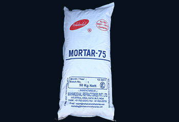 Mortar-75 is a high-alumina refractory mortar containing about 75% alumina, offering high bonding strength, better thermal stability, and abrasion resistance. It is used for excellent setting of high-alumina bricks and for the repair of furnace linings and is found to work efficiently in kilns, boilers, steel works, and other high-temperature processes.